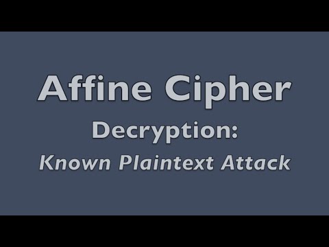 In this video I talk about ways to decrypt the Affine Cipher when the key is NOT known. Specifically, I go over an example of the known plaintext attack.