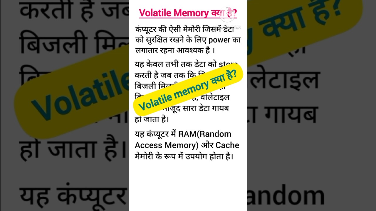 what is Volatile Memory||Volatile Memory Kya hai|| #computerknowledge #computer