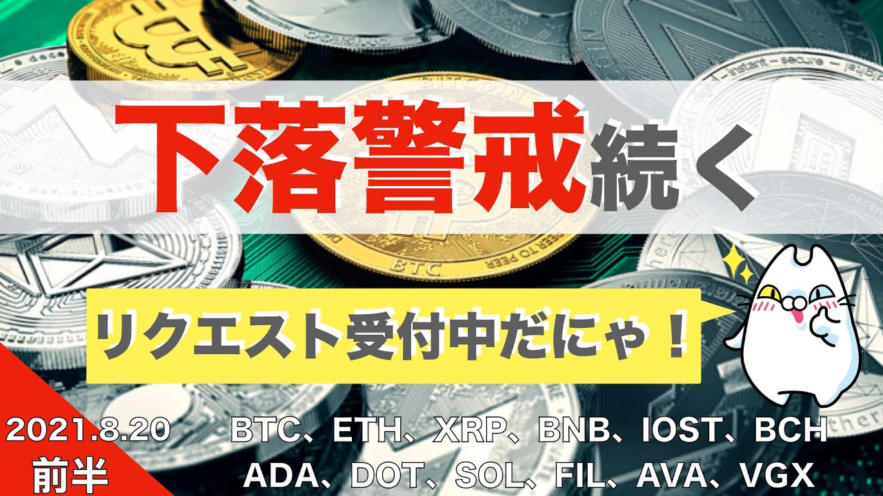 【BTC、ETH、XRP、BNB、IOST、BCH、ADA】下落警戒続く(2021年8月20日 相場分析)