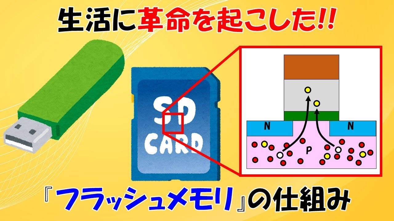 今回はフラッシュメモリの仕組みを解説します。大量の情報を保存できるフラッシュメモリですが、半導体の面白い性質やノーベル賞を取ったトンネル効果をつかってます。ゆっくり解説。