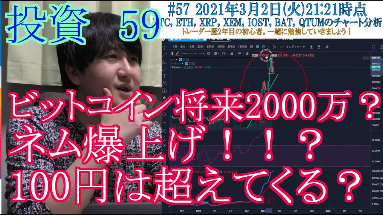 【投資】#59 ネム爆上げ!ビットコイン将来2000万?仮想通貨ビットコイン、イーサリアム、リップル、ネム、IOST、BAT、クアンタムのチャート分析!